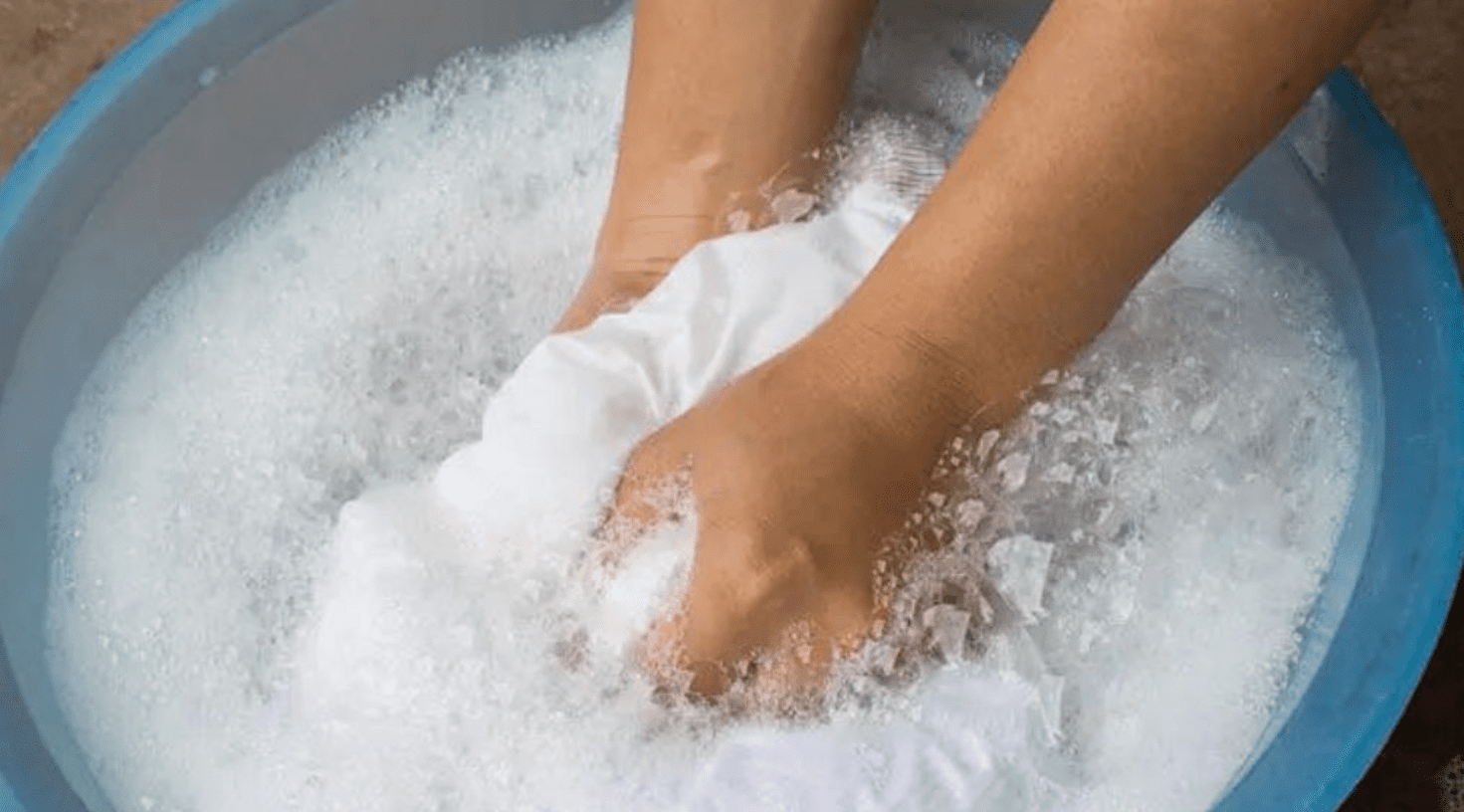 Per usarlo, immergi i tuoi vestiti in un contenitore con acqua calda e aggiungi ½ tappo di candeggina.