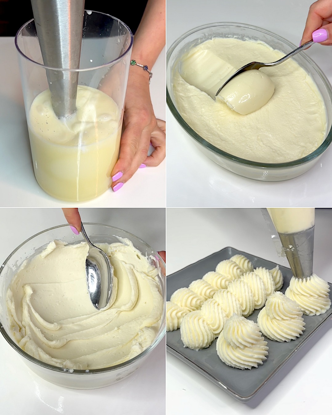 - In un pentolino, scaldare la panna fresca fino a farla sobbollire, quindi versarla sul cioccolato bianco tritato. Mescolare delicatamente fino a quando il cioccolato non si è completamente sciolto.